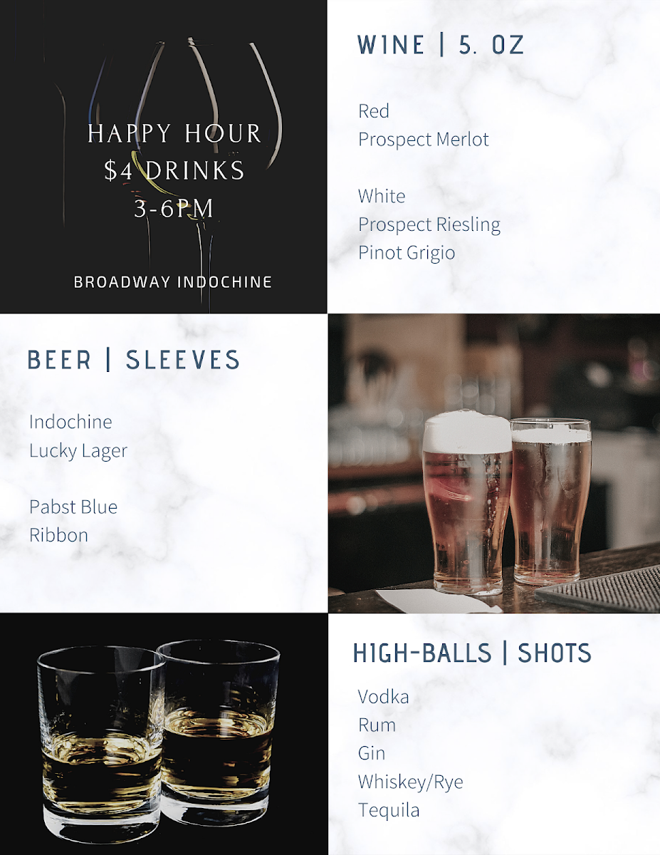In addition to the mouth-watering main dishes, Indochine Kitchen + Bar also offers a variety of appetizers, rice dishes, sides, sauces, and alcoholic beverages to complement your meal. The menu truly has something for everyone, making it the perfect spot for a casual lunch or a fun night out with friends.